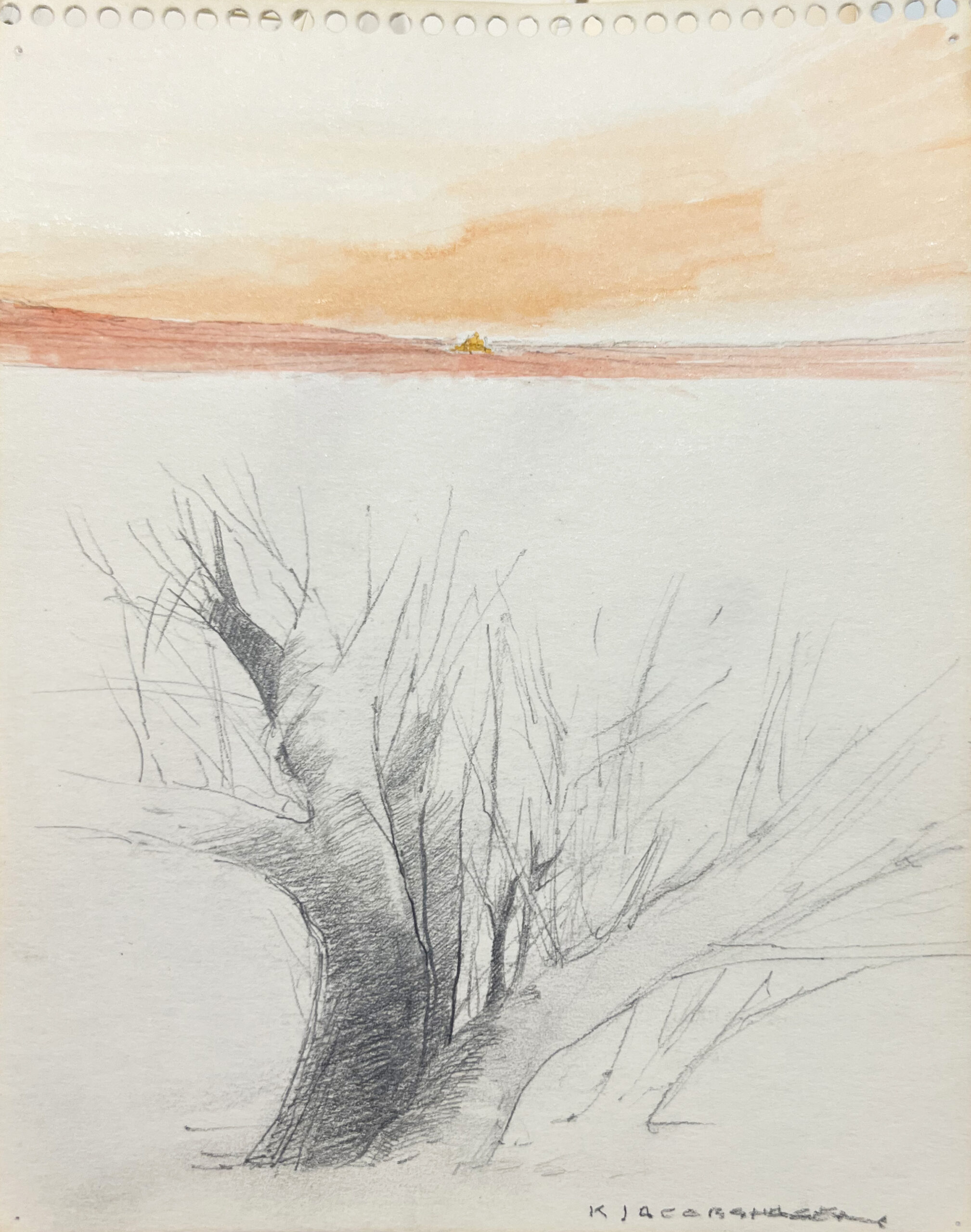 Watercolor and graphite on paper. Framed.